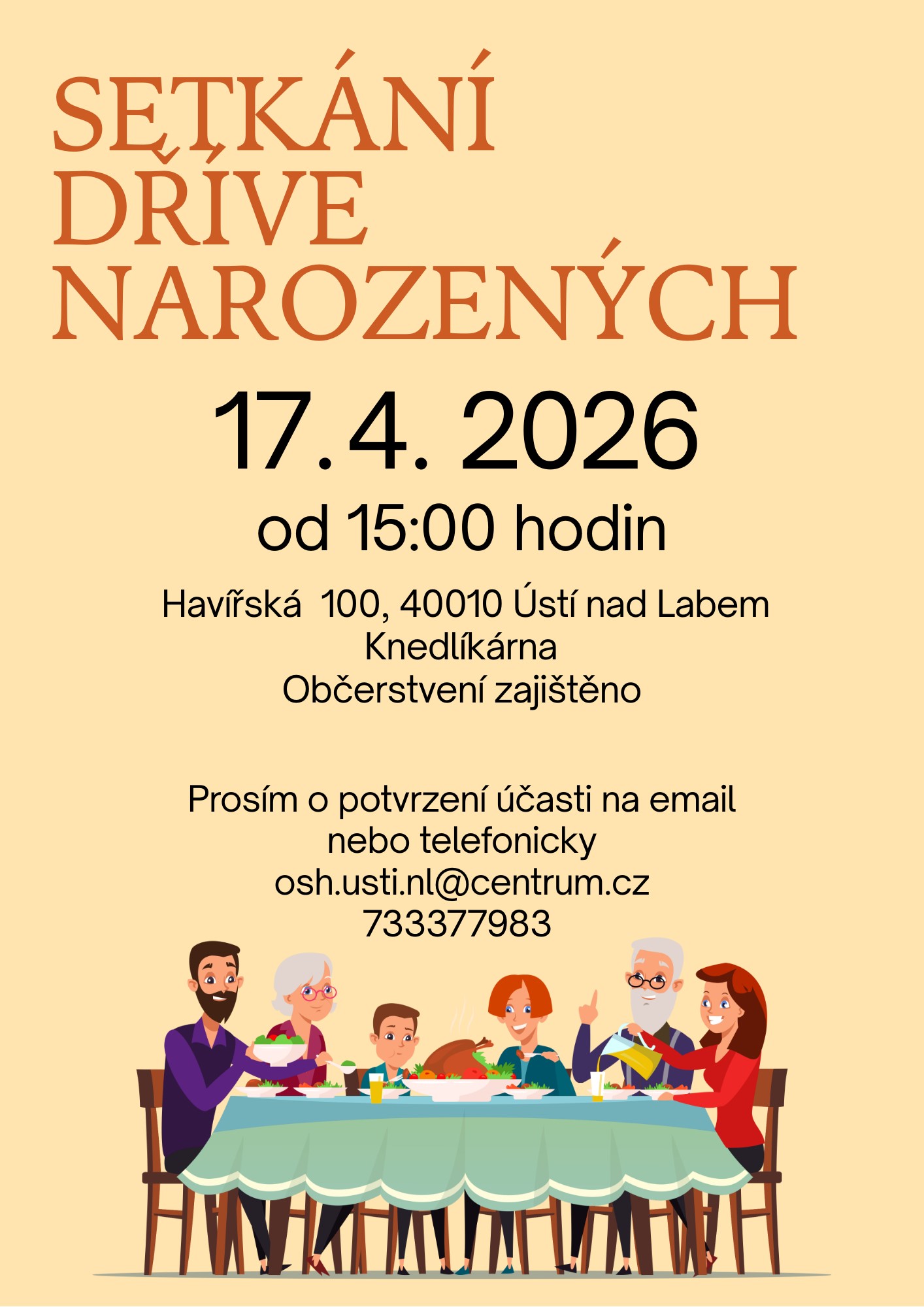 Setkání "dříve narozených" 2026 Kdy: 17. 4. 2026 15:00 – 17. 4. 2026 22:00 Kde: Havířská 100, Ústí nad Labem Kraj: Ústecký Typ akce: ostatní Zpět
